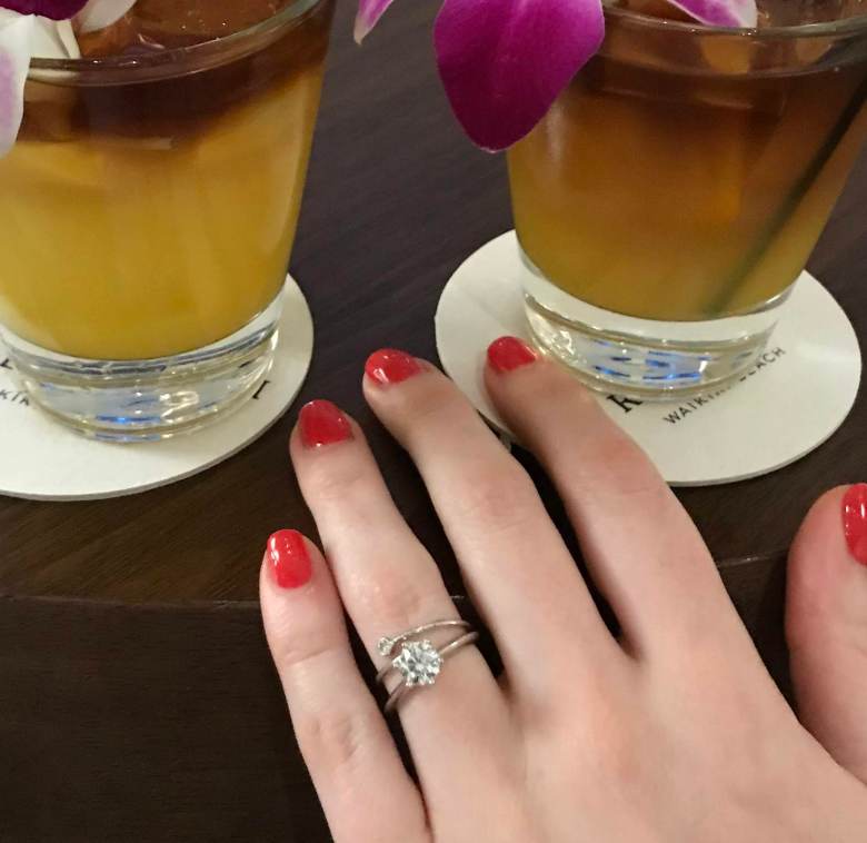 But it still wasn’t over. Even when I arrived in Hawaii, at our hotel – I was constantly worried. What about housekeeping? I can’t put it in the safe – that’s where we put the passports and joint things, and she’ll be able to get to it there. I’ve read that you can ask the main desk to use their safe, but that’s also a risk because you’ll need to get separate from her, and I’ve also read some anecdotal horror stories of things getting lost from the front desk. I chose to keep the ring in my laptop bag, in the closet, next to the safe, where she would likely leave it alone – and just had to trust that the hotel staff wasn’t going to rifle through my things.