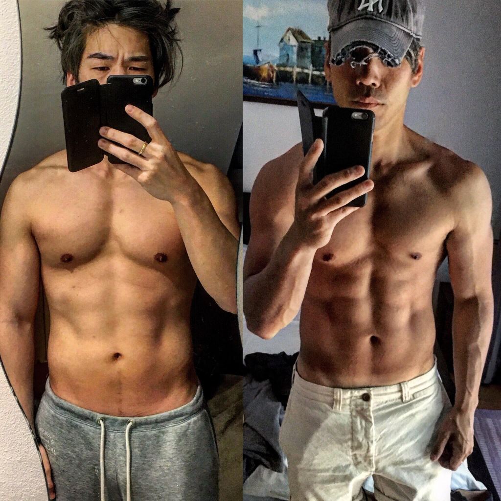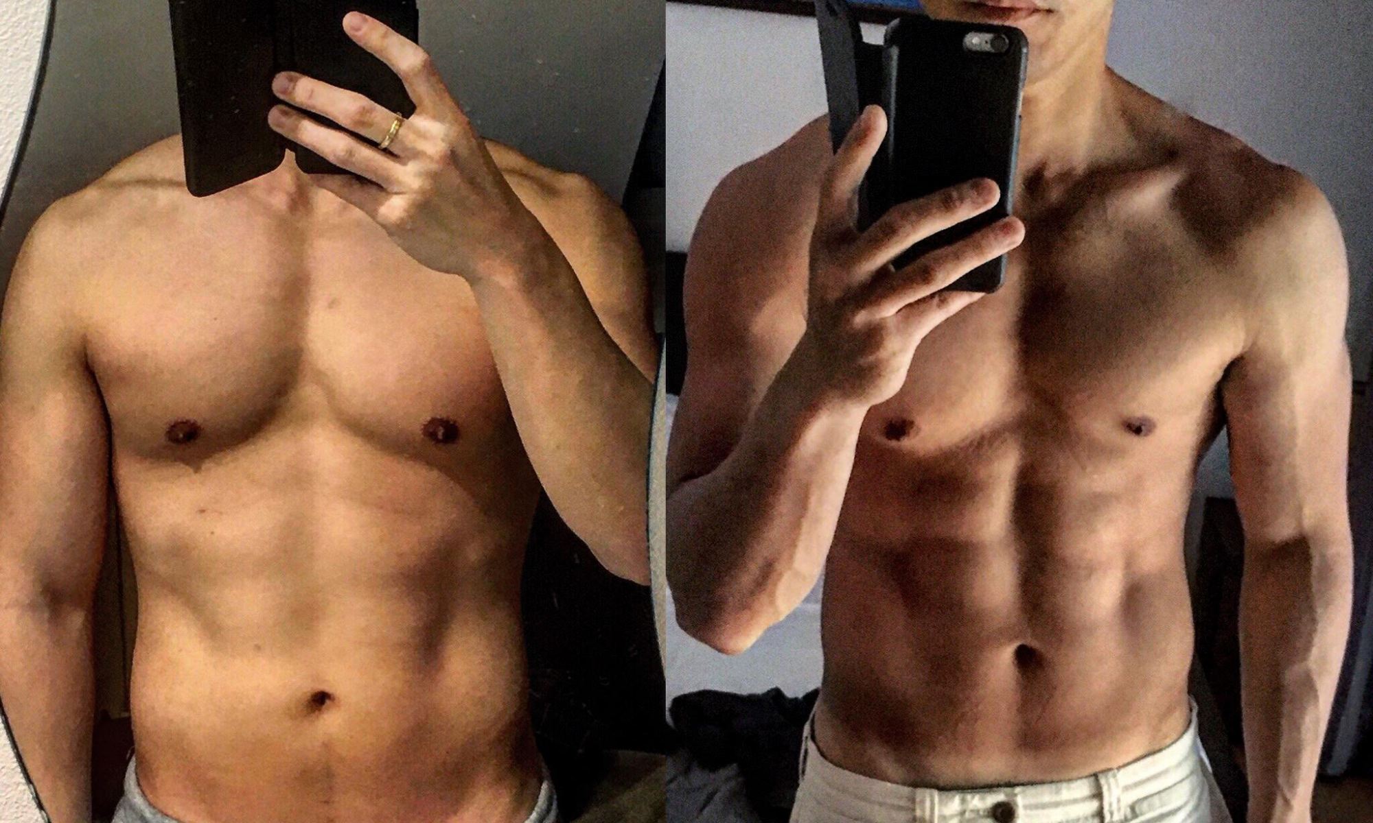The two photos are separate by about 6 months. You can see, in the “before” photo, I’m generally fit, have some layers of fat over some muscle mass. We’ll get you into how to determine the percentage of body fat later, but just looking at these photos, I remember the “before” – I was close to 180 pounds, and was probably holding c.20% body fat.