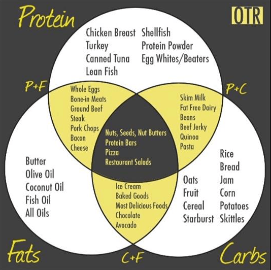 The simple goal? You generally want foods that provide the most concentrated, pure forms of the macros per bite. So for example, you want P, then go for a P that is mostly P, and less F – like yep, chicken breast (when without skin, is lean, and mostly just protein!)
